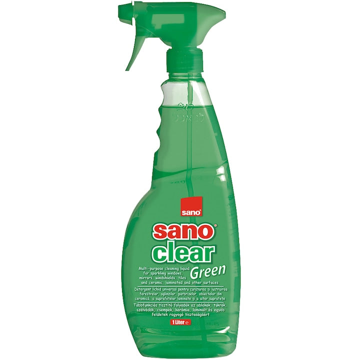 Sano Clear Green este un detergent profesional cu pulverizator, ideal pentru curățarea geamurilor, oglinzilor, parbrizelor, dar și a suprafețelor ceramice, din porțelan sau laminate. Formula sa eficientă elimină rapid murdăria, urmele de apă și grăsimea, fără a lăsa urme sau dâre.