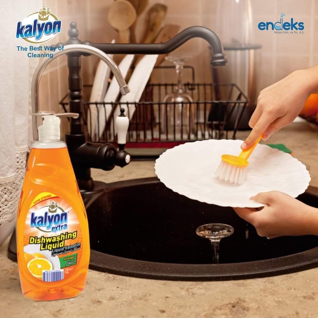 Descoperă puterea prospețimii și curățeniei impecabile cu „Detergentul de spălat vase KALYON Extra Orange 735ml”