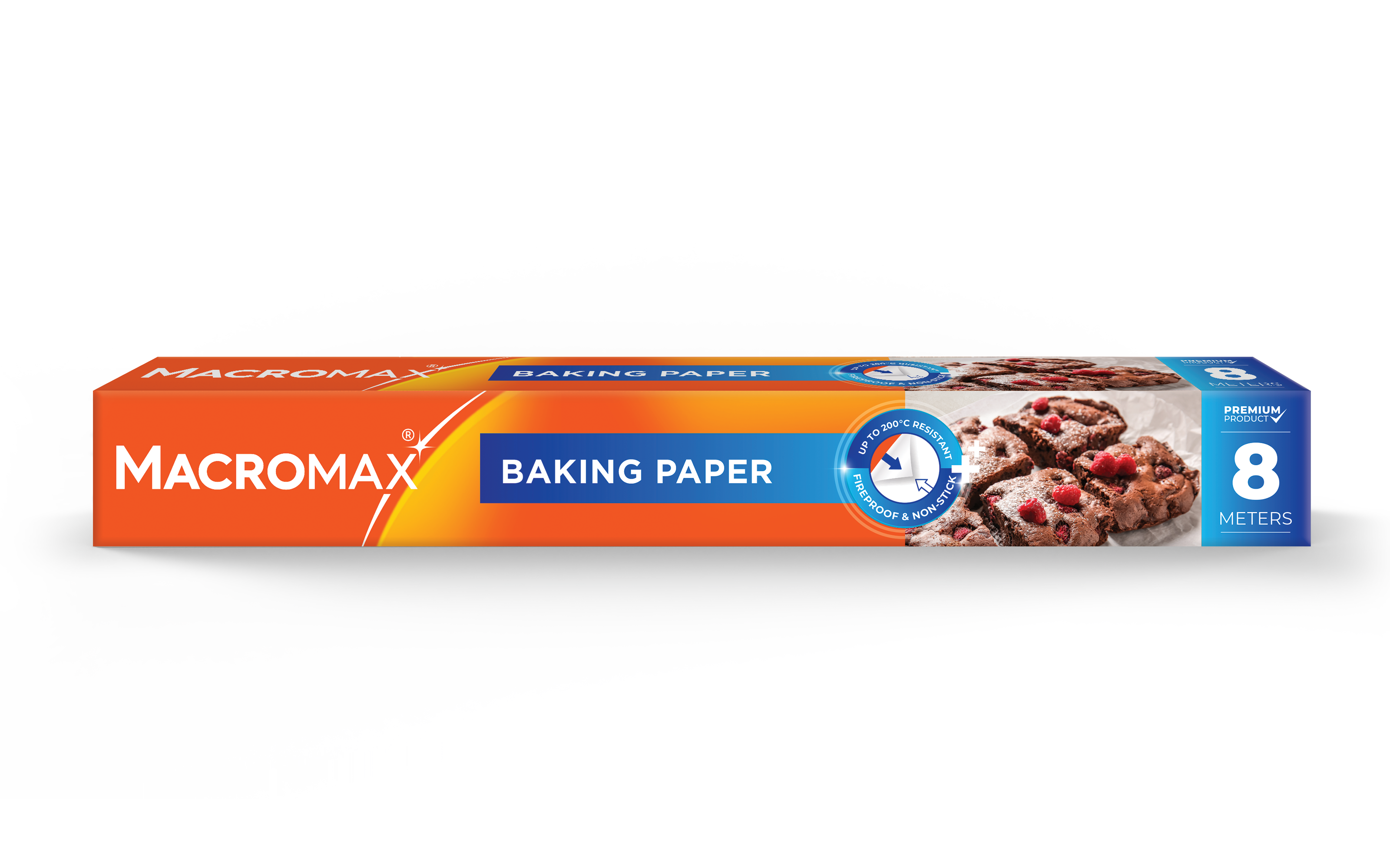 Hârtia de copt Macromax vă permite să vă gătiți alimentele într-un mod igienic și sănătos, fără a vă lubrifia tava de copt.