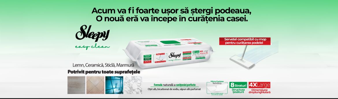 Lavetele umede Sleepy Easy Clean sunt special concepute pentru utilizare cu mopul MACROMAX. Aceste lavete sunt pre-umedate cu o soluție de curățare care nu doar că îndepărtează murdăria și petele dificile, dar și lasă pardoselele strălucitoare fără a lăsa reziduuri. Formula lor este potrivită pentru toate tipurile de pardoseli, inclusiv lemn, gresie și marmură.
