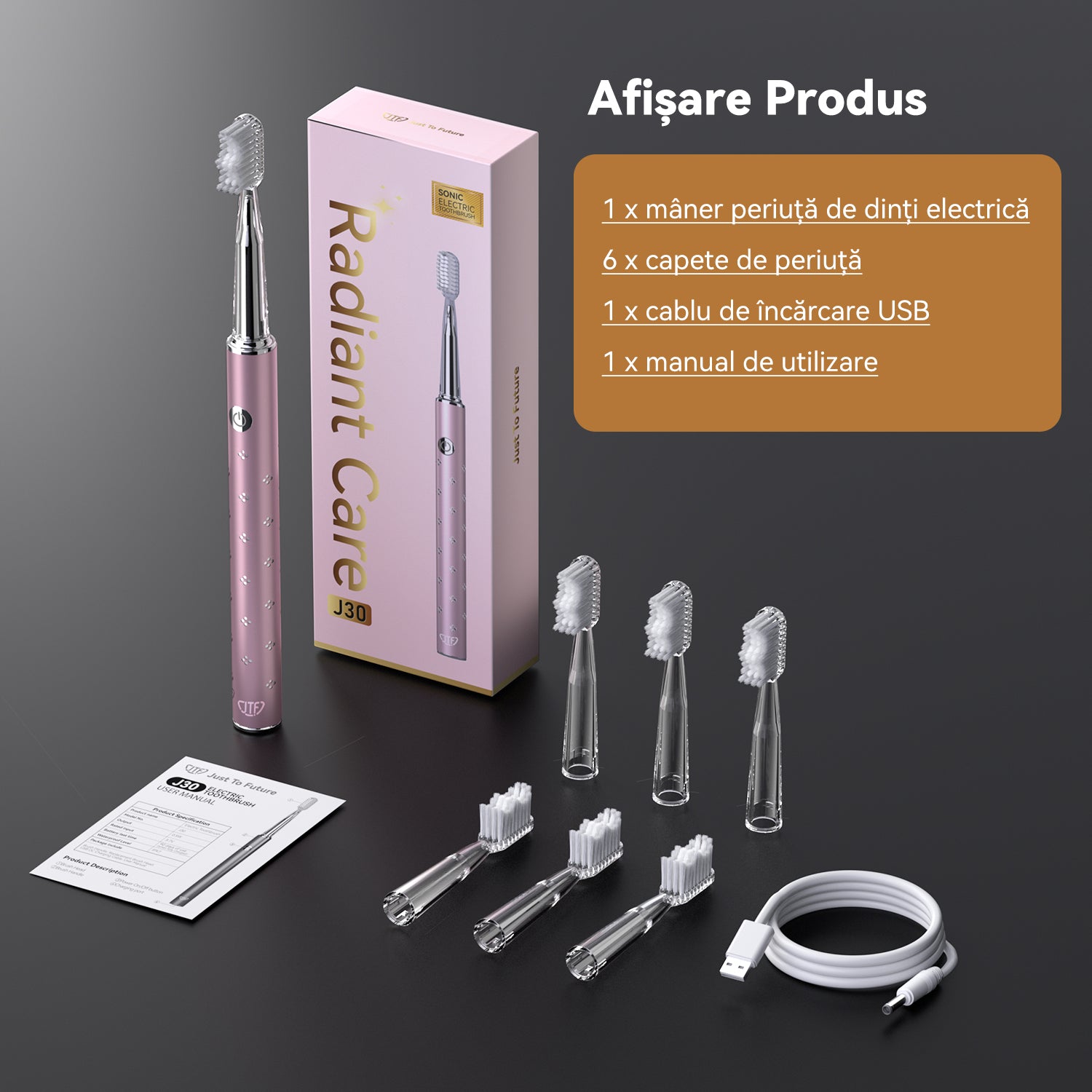 Bucură-te de un zâmbet strălucitor și de o îngrijire orală inteligentă cu periuța electrică sonic Radiant Care J30. Cu un design modern, finisaj roz strălucitor și performanțe de top, această periuță este companionul ideal pentru igiena ta zilnică.