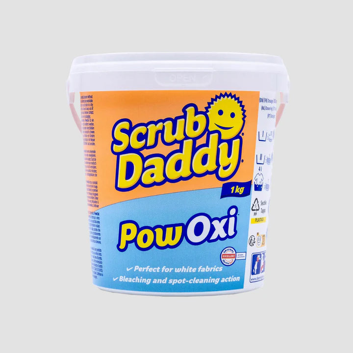 Scrub Daddy Pow Oxi White este o pudra puternica pentru curatarea si reimprospatarea hainelor albe, conceputa pentru a elimina petele dificile si a reda stralucirea fibrelor fara a deteriora materialele.