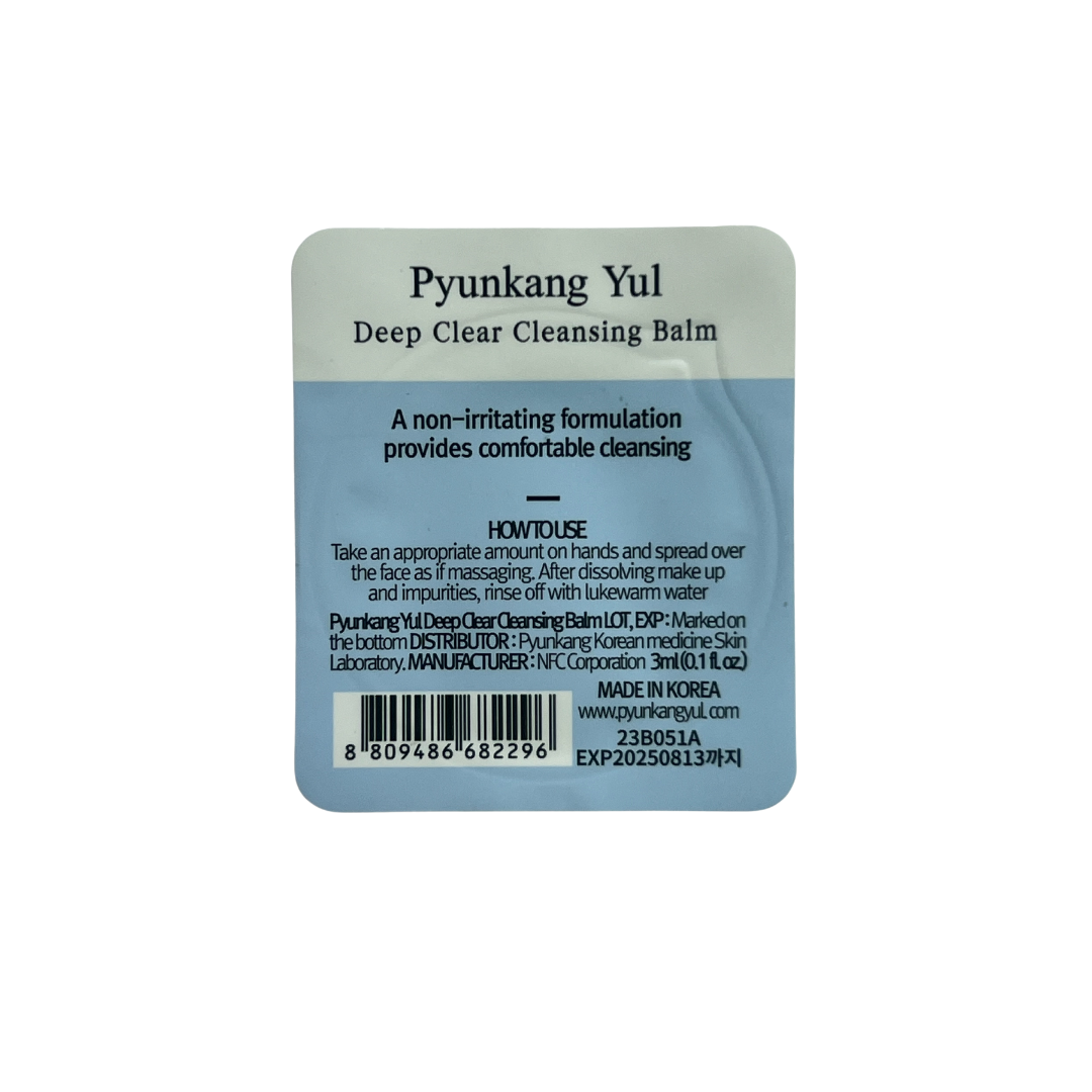 Descoperă Pyunkang Yul Deep Clear Cleansing Balm, un balsam pentru curățare facială în format de mostră de 3ml, ideal pentru testarea produsului și pentru călătorii. Formulat cu ingrediente esențiale, acest balsam oferă o curățare profundă și eficientă, lăsând pielea curată, hidratată și revigorată.
