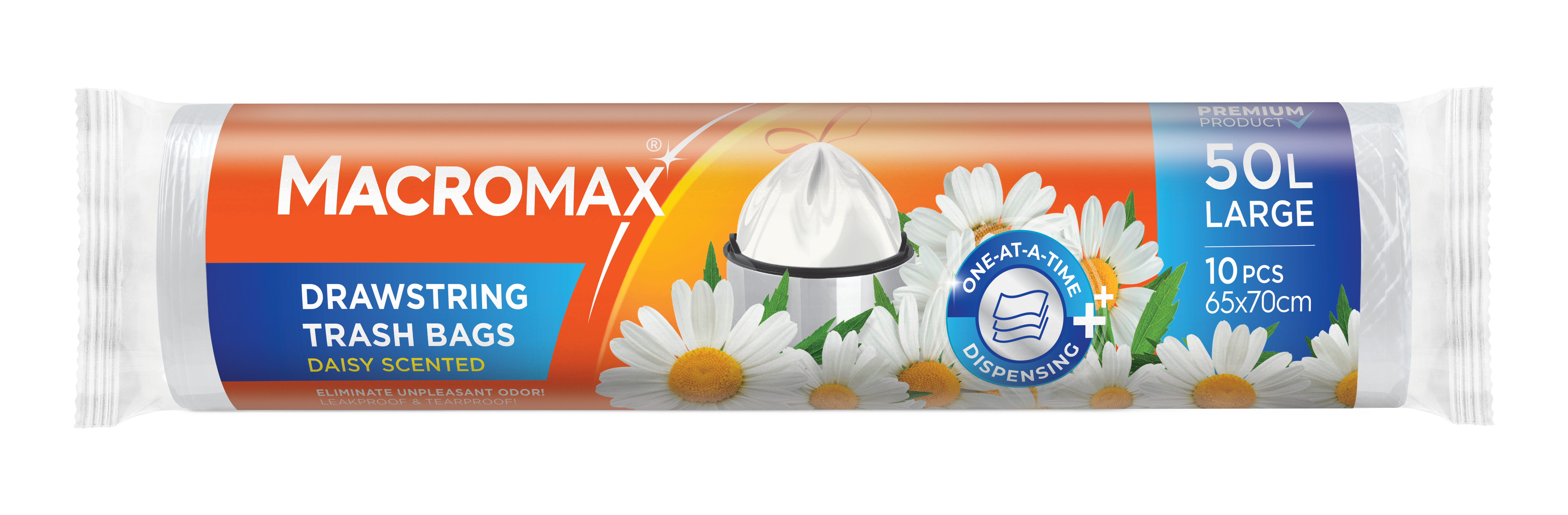 Saci menajeri cu șnur MACROMAX Large 50L, Chamomile, 10 buc.