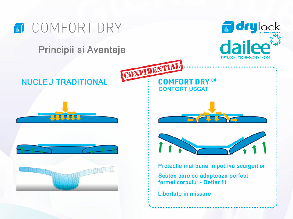 O caracteristică inovatoare a acestor chiloți este tehnologia lor de absorbție cu „Tuburi”, care este o exclusivitate a brandului DAILEE. Această tehnologie permite o absorbție eficientă și uniformă a lichidelor, direcționându-le în interiorul chiloților printr-un sistem de trei canale, astfel încât utilizatorii să se simtă mereu uscați și protejați.