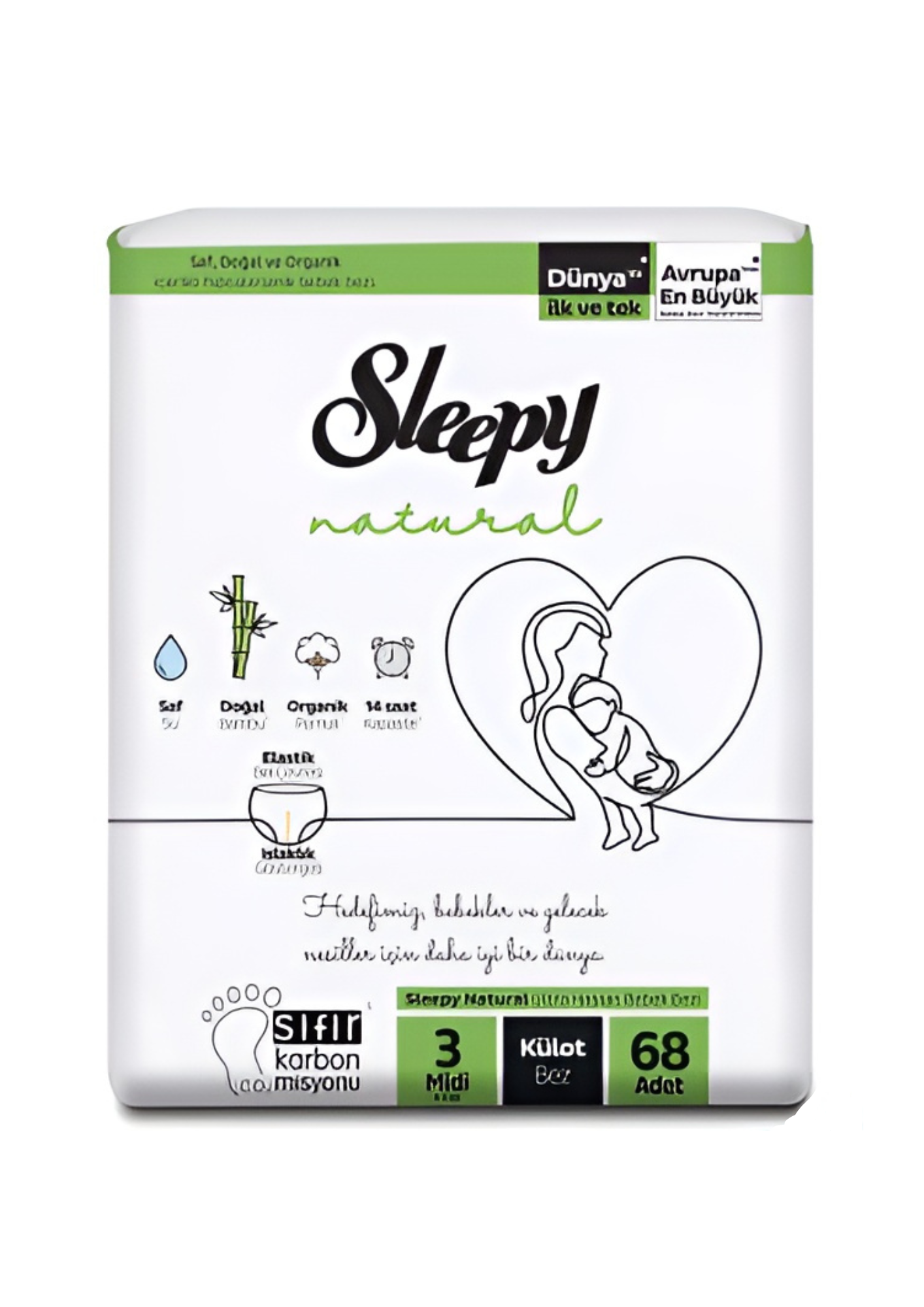 Scutece-Chilotel pentru bebeluși Sleepy Natural Double-mărime 3 Midi , 4-9kg, 68 bucăți