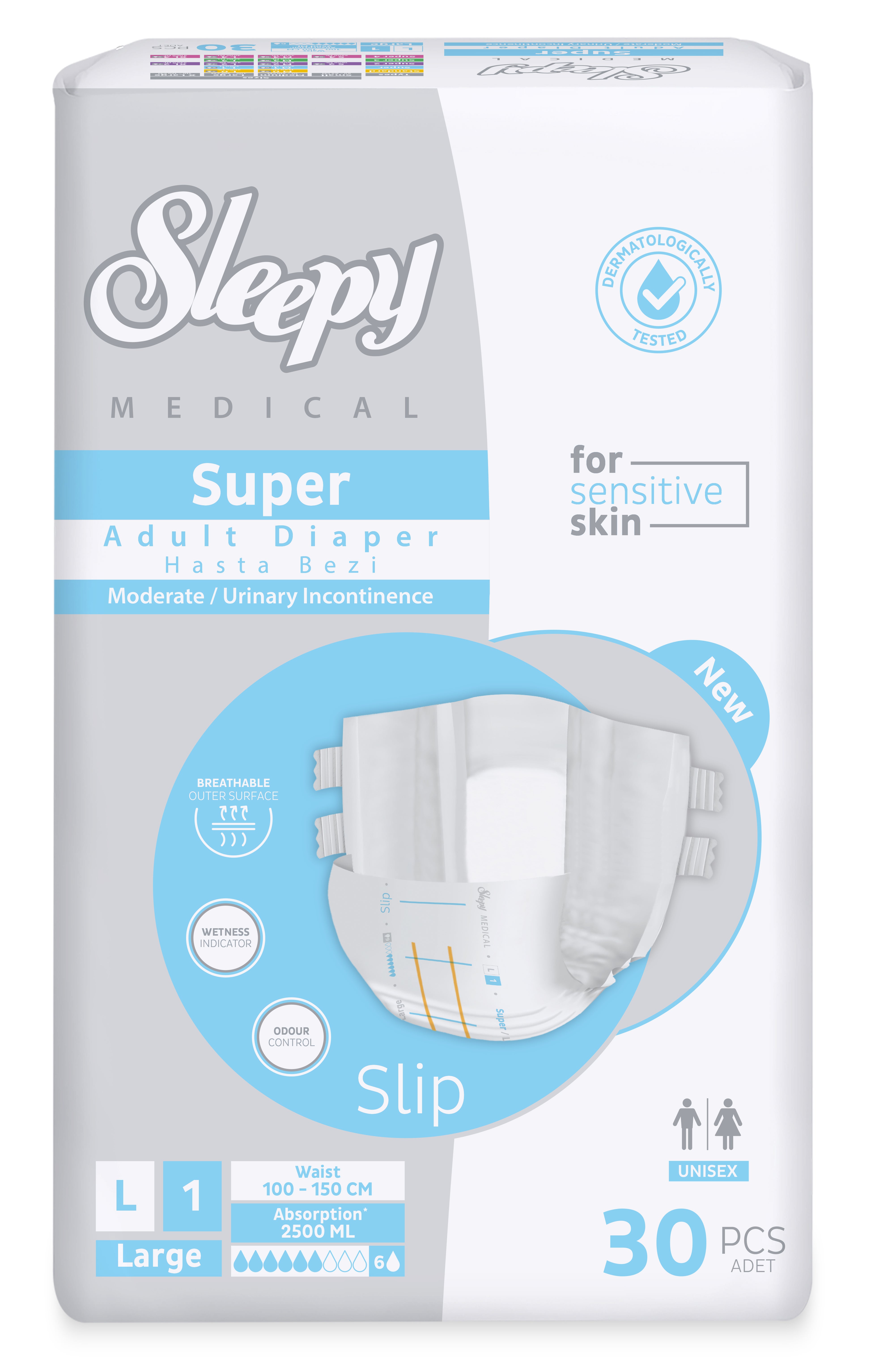 Scutecele pentru adulți Sleepy Medical Super 1 sunt concepute pentru protecție sigură și confort pe termen lung, destinate persoanelor cu incontinență urinară moderată sau severă. Fabricate din materiale moi și respirabile, acestea oferă o senzație plăcută pe piele și previn iritațiile datorită structurii hipoalergenice.