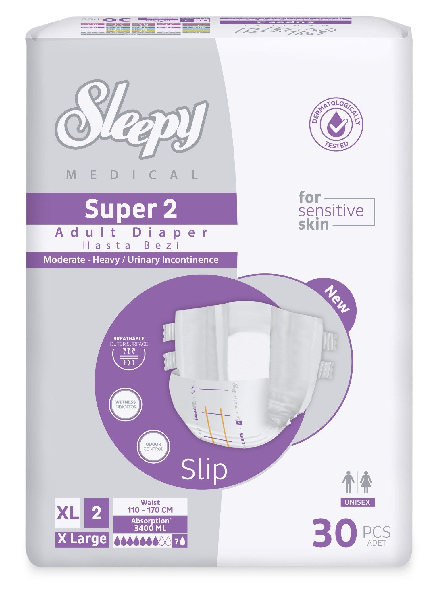 Scutecele pentru adulți Sleepy Medical Super 2 XL oferă protecție avansată, confort și siguranță maximă pentru persoanele care se confruntă cu incontinență urinară moderată sau severă.